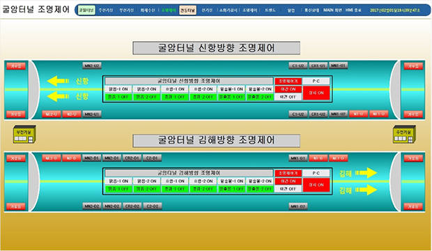 - HMI를 통한 터널내 모든 장비 감시 및 제어가 가능하도록 SYSTEM 구축