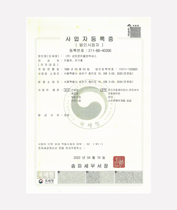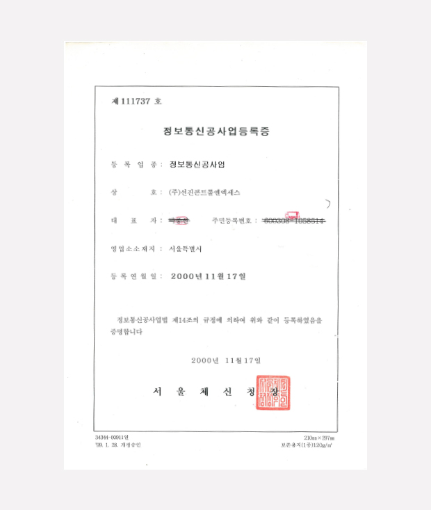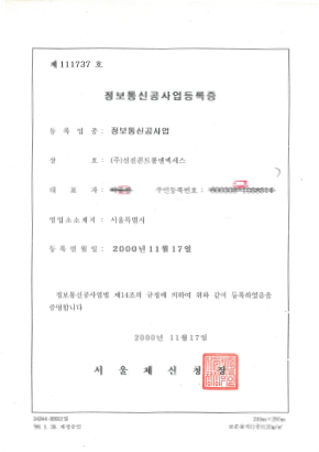 정보통신공사업등록증