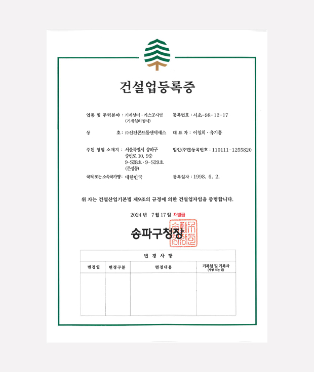 건설업등록증(기계설비)