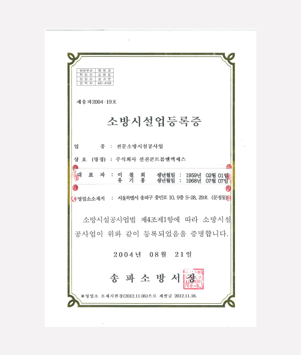 소방시설업등록증