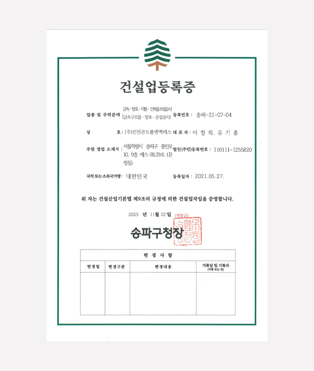 건설업등록증(금속창호)