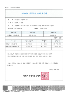 2024년도 기계설비공사업 시공능력 순위확인서 (자동제어공사)