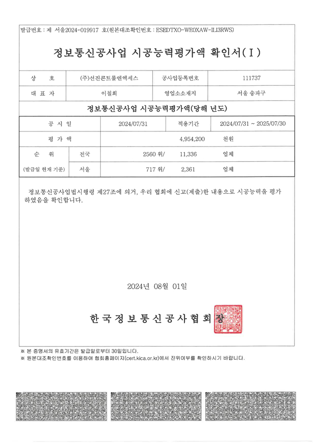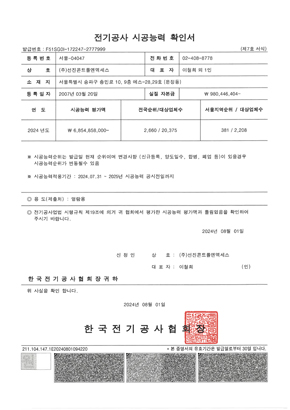 2024년도 정보통신공사업 시공능력평가액 확인서