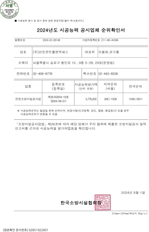 2024년도 전문소방시설공사업시공능력 공시업체 순위확인서