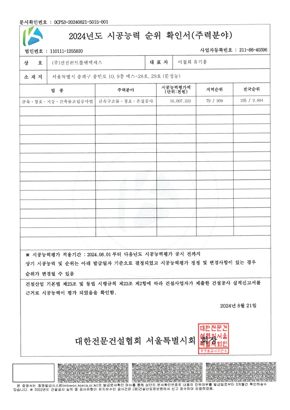2024년도 금속·창호·지붕·건축물조립공사업시공능력 순위확인서